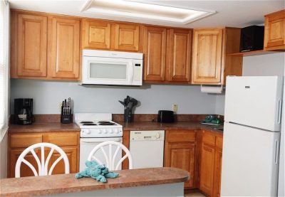 - Full kitchen with cookware, serveware, microwave, coffeemaker and toaster.